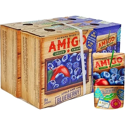 Az Amigó 200 ml Szívószálas Áfonya üdítőital egy frissítő, gyümölcsös ital, amely 10% gyümölcstartalommal rendelkezik. A termék szívószállal ellátott csomagolásban kapható.
