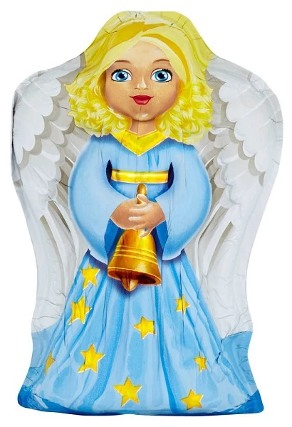 Tejcsokoládé figurás édesség, ünnepi angyalka formában. Lágy, krémes tejcsokoládé ízvilág jellemzi, amely ideális szezonális ajándéknak vagy ünnepi édességnek.