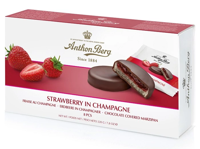 cukor, kakaómassza, mandula (11%), sárgabarackmagvelő, eper (10%), glükóz szirup, kakaóvaj, borok [pezsgő (1,5%), fehérbor], alkohol, tejzsír, étkezési sav (citromsav), zselésítő anyag (pektin), aromák, emulgeálószer (repcelecitin), tartósítószer (szorbinsav, kálium-szorbát).