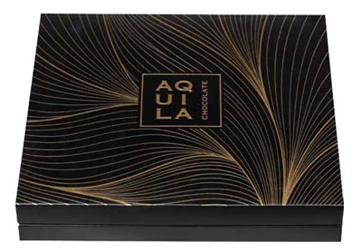 Az Aquila Desszert Válogatás 250 g-os kiszerelésben kínál különleges csokoládépralinékat. A fekete-arany csomagolás eleganciát és prémium megjelenést kölcsönöz, miközben a válogatás változatos ízvilága garantálja a csokoládéélményt minden alkalomra.