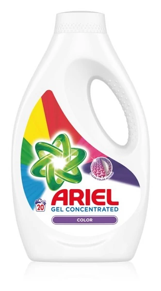 Ariel Color folyékony mosószer, amely már az első mosáskor kiválóan eltávolítja a foltokat. Kíméletlenül elbánik a foltokkal, ugyanakkor rendkívül gyengéd a ruhákhoz, és megőrzi a színes ruhák élénk színét. A mosóportól eltérően az Ariel folyékony mosószer azonnal munkához lát a mosáskor. Eltávolítja a kellemetlen szagokkal (például izzadság- és testszaggal) járó foltokat; ragyogóan tisztává és illatossá varázsolja a színes ruhákat. A legkiválóbb eredmény érdekében helyezze a mosószerrel megtöltött kupakot a mosógép dobjába.
