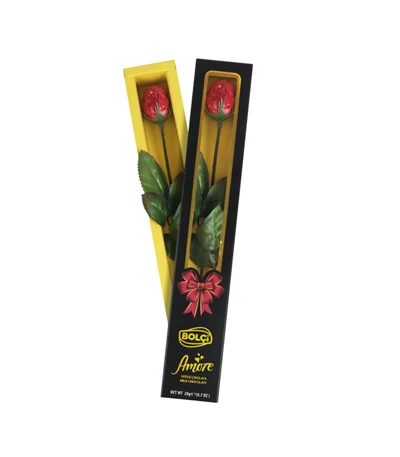 A Bolci Tejcsokoládé Rózsa egy 20 g-os, prémium minőségű tejcsokoládé, rózsa formájú desszert fekete díszdobozban. Kellemesen édes ízű, tejből és kakaóból készült csokoládé.