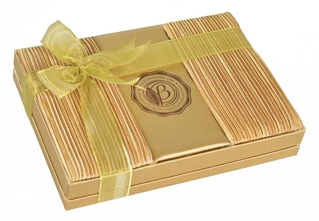 Bolci 18 féle vegyes praliné ét, tej és fehércsokoládéban, exclusive egyedi szatén borítású díszdobozban
