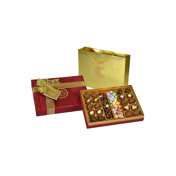 Bolci 18 féle vegyes praliné ét, tej és fehércsokoládéban, exclusive egyedi szatén borítású díszdobozban