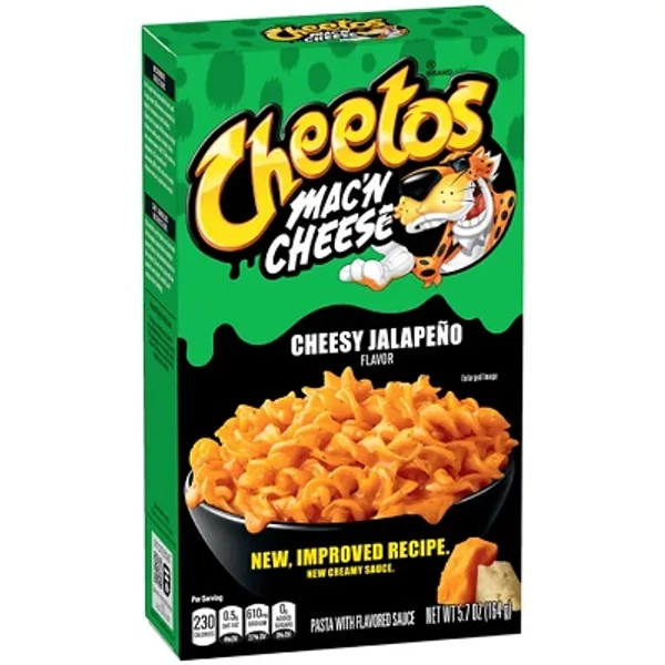 Krémes, sajtos Mac & Cheese jalapeno csípősséggel ötvözve, ropogós Cheetos darabokkal. A Cheetos Mac & Cheese Sajtos-Jalapenos izgalmas egyensúlyt teremt a lágy sajtos íz és a pikáns jalapeno csípősség között.