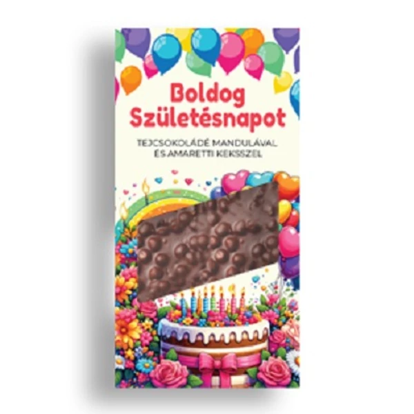 A Chocolips Boldog Születésnapot – Tejcsokoládé Mandulával és Amaretti Keksszel (100 g) egy különleges ajándékcsokoládé, lágy tejcsokoládéból, roppanós mandulaszeletekkel és illatos amaretti kekszdarabokkal. Tökéletes meglepetés születésnapra.