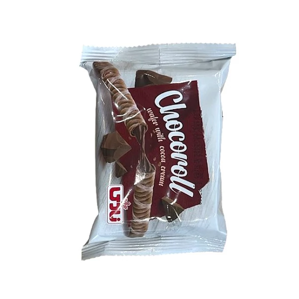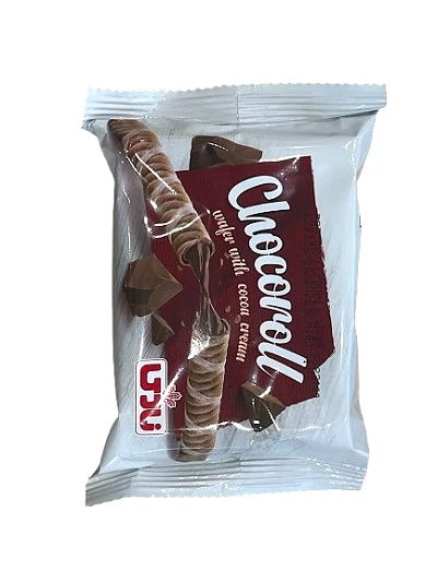 Ropogós, kukoricakeményítő alapú ostyarúd gazdag csokoládékrém töltelékkel. Tartalmaz: glutént, tejet, szóját.Chocoroll 30 g – Csokoládékrémes ostyarúd