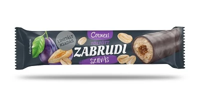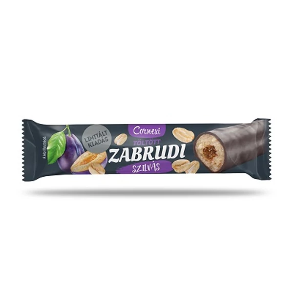 A Cornexi Zab Rudi szilvás ízű müzliszelet zabpehely alapú, finom töltelékkel és joghurtos bevonattal, tökéletes választás egy egészséges és ízletes nassolnivalóhoz.
