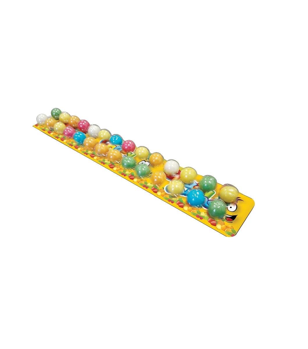 Cukor, rágó-gumi alapanyagok (antioxidáns: E320, allergén:szója), glükózszirup, aromák, nedvesítőszer glicerin, színezékek(E171, E160a, E120, E101/E141, E133, fényezőanyag E901.