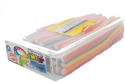 Összetevők: cukor, glükóz-fruktóz szirup, zselatin, kukoricakeményítő, savanyúságot szabályozó anyagok (citromsav, almasav), külső savanykás bevonat (szóda- és citromsav keverék, cukor), aromaanyagok (gyümölcsös ízek), pektin, természetes és mesterséges színezékek (E100, E120, E133, E160a), étkezési só. Allergének: zselatin (sertés eredetű); nyomokban tejfehérje és szója előfordulhat.