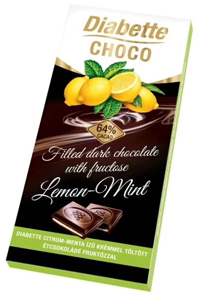 Diabette Choco 80G Ét Lemon-Mint 64% Citrom-Menta, Fruktózzal