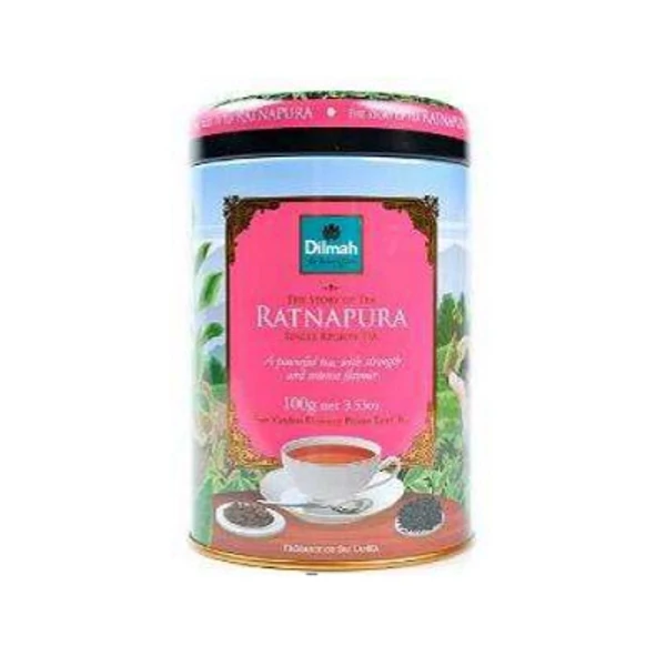 Dilmah Ratnapura Sparkling 100 g – élénk, világos ízű Ceylon fekete tea a Ratnapura régióból, elegáns fémdobozos csomagolásban, frissítő aromákkal.
