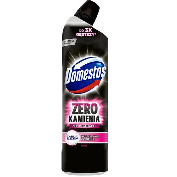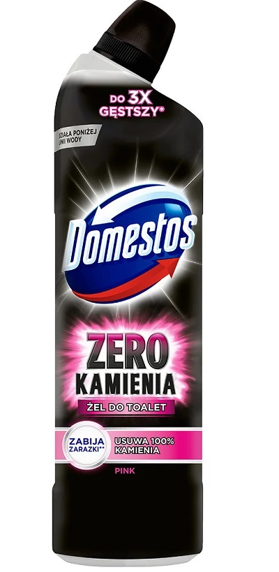 A Domestos Zéró Pink WC vízkőoldó gél sűrű állagának köszönhetően hosszú ideig megtapad a WC falán, akár a víz alatti részeken és a függőleges felületeken is. Savas formulájának köszönhetően segít eltávolítani a WC csészéből a makacs vízkövet, ezáltal a benne megbúvó kórokozókat is, így nem csak szebbé, hanem higiénikusabbá is teszi a WC-t!