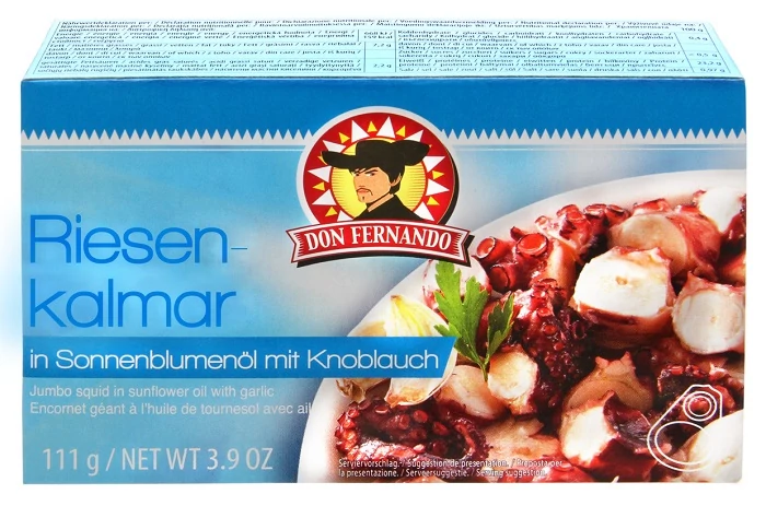 Polip (60%), napraforgóolaj, fokhagyma (3%), víz, ecet, só, petrezselyem, természetes aroma, fűszerek.