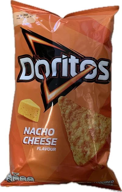 Ropogós, háromszög alakú kukoricachips intenzív nacho sajt ízesítéssel – klasszikus Doritos élmény minden falatban.