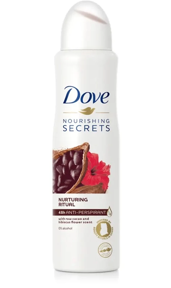 Dove szórófejes dezodor a ghánai szépségápolási hagyományok ihletésében. Hibiszkuszvirág és kakaóbab illata nyugtató érzést ad, miközben akár 48 órán át véd az izzadás és kellemetlen szagok ellen.
