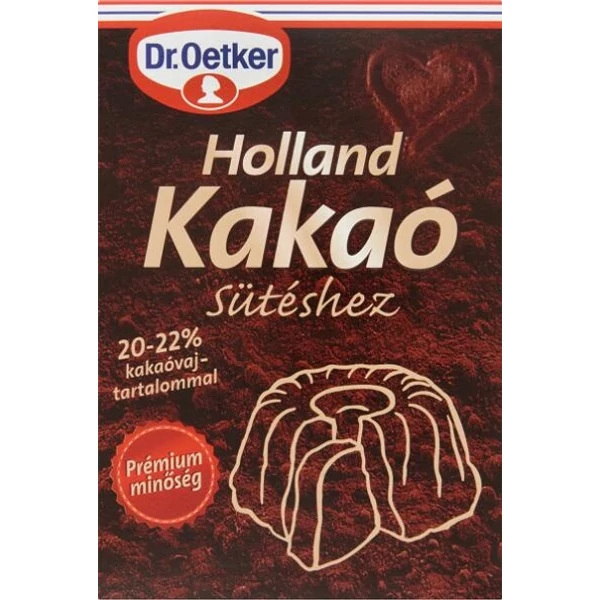 A prémium minőségű, cukrozatlan Dr. Oetker Holland Kakaóport kifejezetten sütéshez javasoljuk. Magas kakaóvaj-tartalmának, intenzív vörösesbarna színének és telt ízének köszönhetően ideális minden kakaós és csokoládés sütemény készítéséhez.
