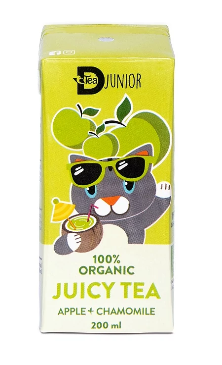 Organikus kamilla tea almalével.Tiszta és természetes termék a fiatal gyermekeknek.Az édes almalé és a főzött kamilla tea tökéletes keveréke.Az almalé mesés ízt ad, míg a kamilla tea ezt a gyümölcslevet lágyabbá és egészségesebbé teszi a gyermekeknek vagy Önnek is.Hozzáadott cukor és koncentrátumok nélkül.Alacsony kalóriatartalommal.Hidegen és melegen is fogyaszthatja.Összetevők:almalé 60%,kamilla tea 40%
