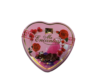 Az Elif 300G Me Encantas Desszert Fémdoboz romantikus hangulatú, dekoratív megjelenésű ajándékcsomag, amely ízletes desszertválogatást rejt esztétikus fémdobozban. A gondosan összeállított édességek kellemes ízélményt biztosítanak, míg a tartós, újrahasznosítható doboz elegáns megjelenésével különleges alkalmakra is ideális választás.