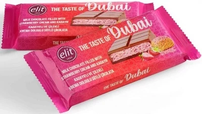 Összetevők: tejcsokoládé (cukor, kakaóvaj, teljes tejpor, kakaómassza, emulgeálószer: napraforgó lecitin, vanília aroma), liofilizált eper (10 %), Dubai-fűszerblend (0,5 %), emulgeálószer: szójalecitin. Nyomokban mogyoró, mandula és glutént tartalmazhat.