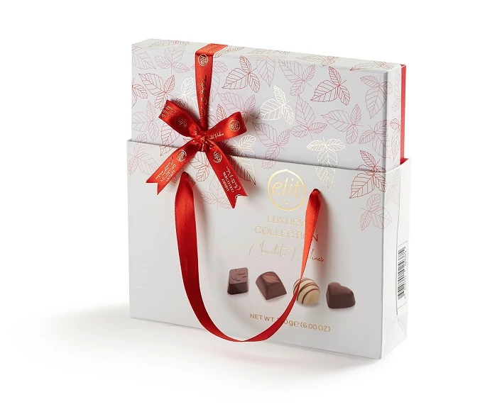 Összetevők: Karamellával töltött tejcsokoládé [tejcsokoládé(cukor,tejpor,kakaóvaj,kakaómassza,emulgeálószer(szójalecitin),természetes aroma(vanilin)))karamell(cukor,glúkózszirup,víz,tejpor,vaj,pektin,emulgeálószer(szójalecitin),zsírsavak mono és digliceridjei,))],Mogyorópralival töltött fehércsokoládé[Fehércsokoládé(cukor,kakaóvaj,tejpor,emulgeálószer(szójalecitin),aroma(vanilin),mogyoró-praliné(cukor,növényi zsír(pálma)mogyoró(17%),tejpor,kakaópor(4%),emulgeálószer(szójalecitin)aroma(vanilin),cukor,tejpor,