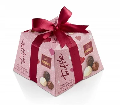 Elegáns rózsaszín díszdobozban kínált luxus trüffelválogatás – krémes ganache töltelékek rózsa-, málna- és gyöngyvirág aromával, tej- és fehércsokoládé bevonattal. Kézzel készült, prémium minőség.
