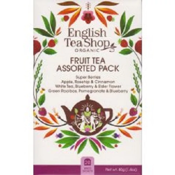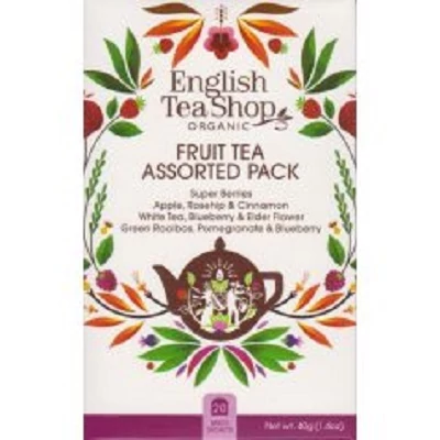 Frissítő bio gyümölcstea válogatás piramis filtertasakokban az English Tea Shop-tól. Ez a különleges kollekció gazdag, természetes gyümölcsös aromákat kínál, melyek tökéletesek a nap bármely szakában.