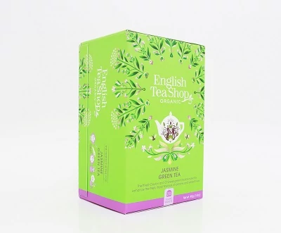 Bio minőségű zöld tea jázminvirággal az English Tea Shop-tól. Ez a finom és illatos tea kellemes jázmin aromájával nyújt frissítő és harmonikus élményt, amely ideális a nap bármely szakában.
