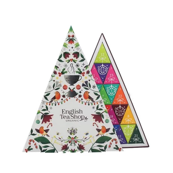Adventi bio teakalendárium 25 db selyempiramis teafilter. -13 féle karácsonyi íz.