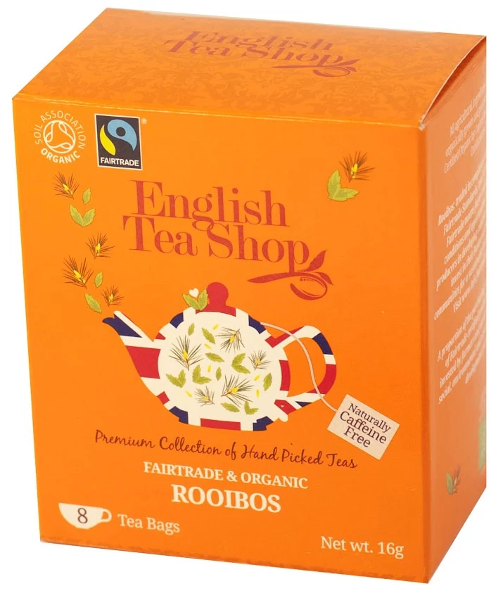 Bio minőségű rooibos tea az English Tea Shop kínálatából. Ez a koffeinmentes, természetes gyógynövény tea gazdag antioxidánsokban és kellemes, enyhén édeskés ízű, ideális választás minden napszakra.