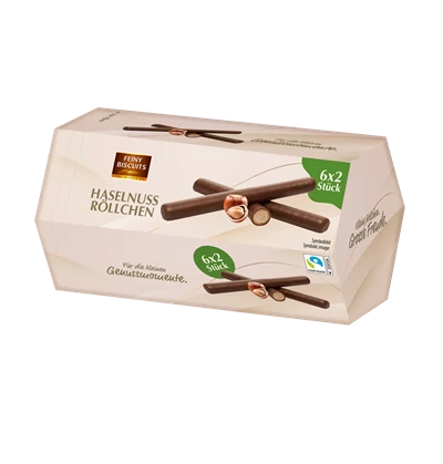 A Feiny B. Hazelnut Wafer Rolls ropogós ostyarudak krémes, mogyorós töltelékkel. Könnyű, légies ostyaszerkezet és gazdag ízvilág jellemzi, amely kiváló választás kávé vagy tea mellé, illetve önálló nassolnivalóként is. A praktikus, 150 g-os kiszerelés ideális megosztásra vagy otthoni fogyasztásra.
