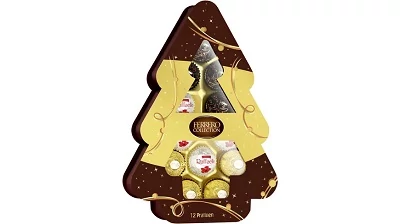 A Ferrero Collection T12 129G Fenyőfa válogatott finomságok különleges csomagolásban, amelyben háromféle klasszikus Ferrero édesség található: Ferrero Rocher, Ferrero Rondnoir és Ferrero Raffaello. Ez a prémium minőségű ajándék tökéletes választás ünnepekre és különleges alkalmakra, hogy örömet szerezzen szeretteinek.