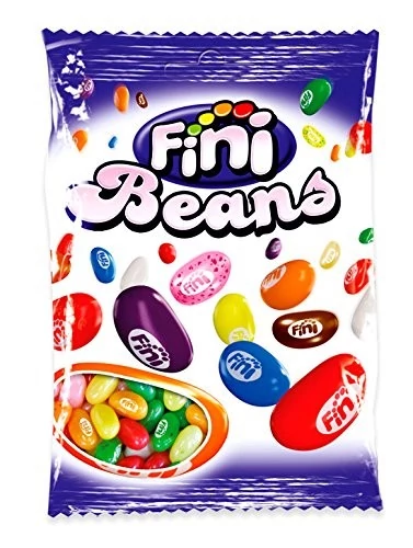 A Fini Jelly Beans (75 g, 10301) színes vegyes ízvilágú gumibab – édes, gyümölcsös aromák sokszínű kavalkádja, puha, rugalmas állaggal minden egyes babban.