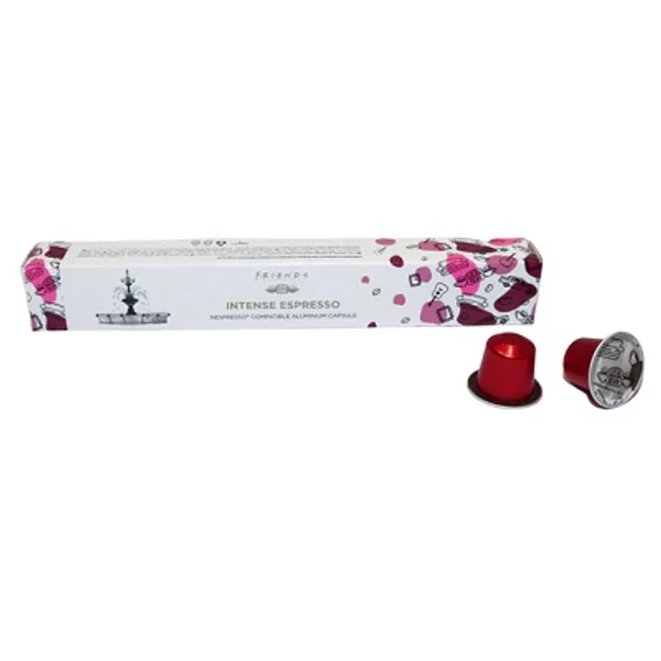 Élvezze a FRIENDS Intense Espresso gazdag és intenzív ízét, amely a népszerű televíziós sorozat ihlette. A kapszulák tejporral, cukorral és kávéval készülnek, így egy erőteljes, édes ital élményét nyújtják. Kiváló választás a napi kávézás során vagy ajándéknak is.