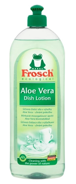 Az Aloe Vera mosogatószer az Aloe Vera növényből nyert kivonatokat tartalmaz, ami mosogatás közben megóvja bőrét a kiszáradástól, így bőre a mosogatás után is puha és selymes marad. A természetes felületaktív anyagok révén hatékonyan tisztít és kitűnően oldja a zsíros szennyeződéseket. Kellemes illata frissen és üdítően hat, ami a mosogatást kellemesebbé teszi.