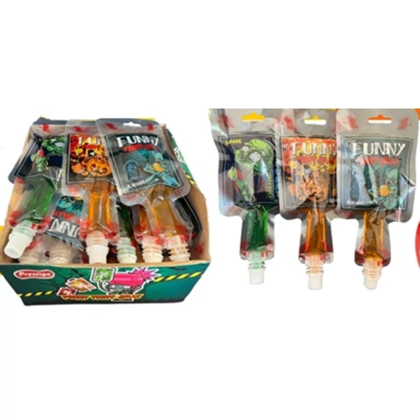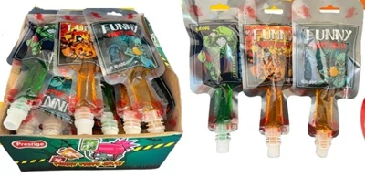 Egyedi, „vértasak” formájú, vegyes gyümölcs ízesítésű zselé édesség. A vicces és meghökkentő külső kreatív ajándékká vagy buli kellékké teszi, különösen Halloween alkalmával.