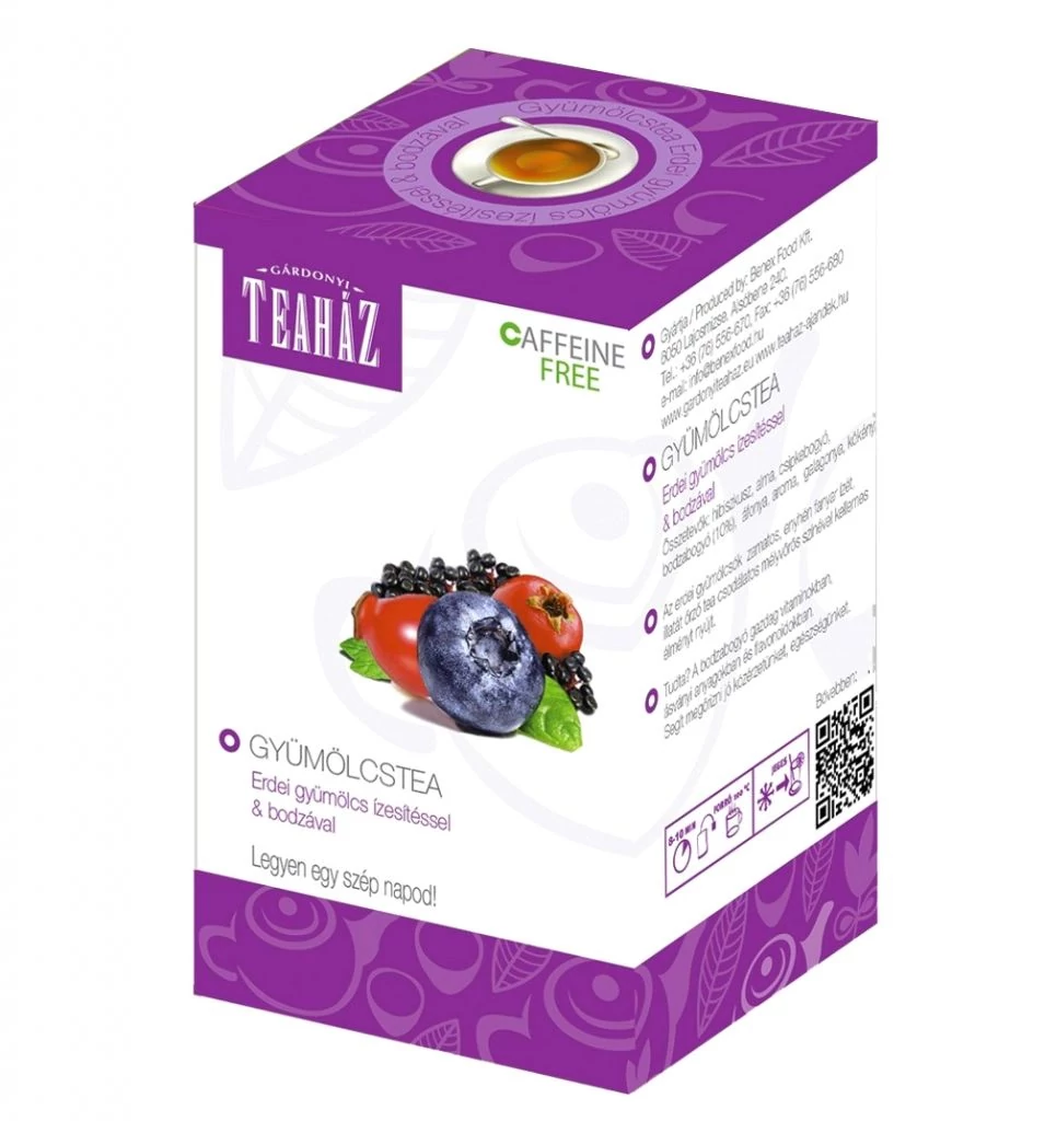 | Specifikáció alapján teljes megnevezés | Gárdonyi Teaház gyümölcstea erdei gyümölcs ízesítéssel & bodzával 20 filter 40 g |