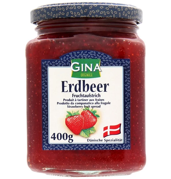 A Gina eperlekvár klasszikus ízvilágú, napérlelte eperből készült gyümölcslekvár. Kiválóan illik reggelikhez, palacsintához, péksüteményekhez vagy sütemények töltelékeként. Hagyományos recept alapján, tartósítószer nélkül készül.