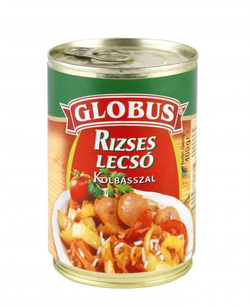Rizses lecsó kolbásszal. Hőkezelt készétel, konzerv.