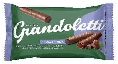 Grandoletti mogyorókrémmel töltött, tejcsokoládéval mártott karamellizált ostyarúd 50 g