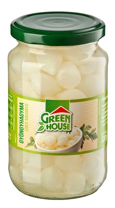 A Green House savanyított gyöngyhagyma ropogós és enyhén édeskés ízű csemege. Kiváló választás hidegtálakhoz, húsételek mellé, szendvicsekhez vagy salátákhoz. Praktikus, visszazárható üvegcsomagolásban, 370 ml-es kiszerelésben, konyhakész állapotban.