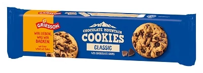 A Griesson Cookies Classic Csokidarabos Vegán Keksz klasszikus, omlós textúrájú keksz, amely gazdag csokoládé darabokkal van gazdagítva. Teljesen vegán receptúrával készül, így tej- és tojásmentes étrendhez is tökéletes választás.