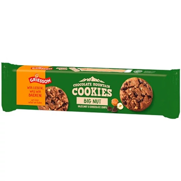 A Griesson Cookies Mogyoródarabos-Csokis Vegán Keksz omlós, vegán receptúrájú keksz, amelyben ízletes mogyoródarabok és gazdag csokoládédarabok találhatók. Tökéletes választás azoknak, akik növényi alapú, tej- és tojásmentes édességet keresnek.