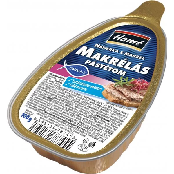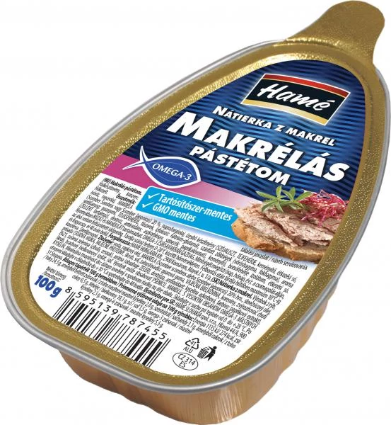 Makrélás pástétom. Halkészítmény, konzerv. Hőkezelt.