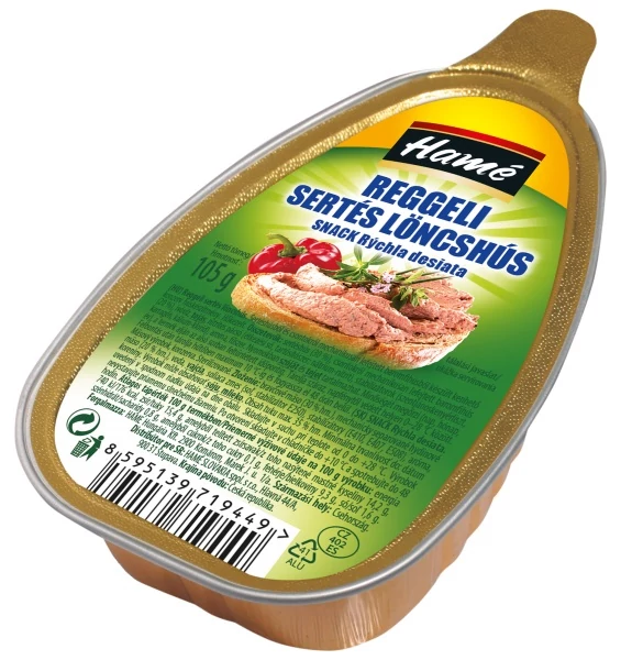 Sertéshús (30%), Csontokról mechanikusan lefejtett baromfihús (20%), Ivóvíz, Tojás, Nitrites pácsó (étkezési só, tartósítószer: nátrium-nitrit), Stabilizátorok (szentjánoskenyérliszt, karragén, kálium-klorid), Aroma, Fűszer