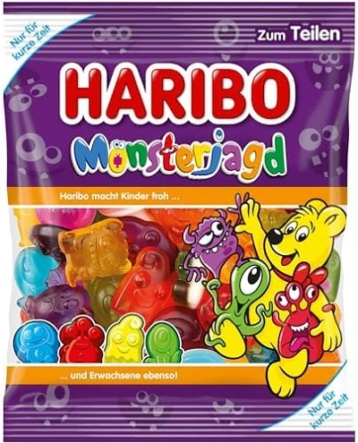 Allergének (kiemelve): Nyomokban előfordulhat tej és búza (glutén). Gluténmentes. Tartalmaz zselatint (állati eredetű). Előfordulhatnak nyomokban tej és búza (glutén). Nem ajánlott érzékenyeknek.Haribo Monsterjagd 160 g