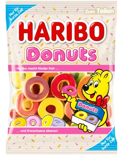 A Haribo Donuts egy vidám, fánk alakú gumicukor válogatás.