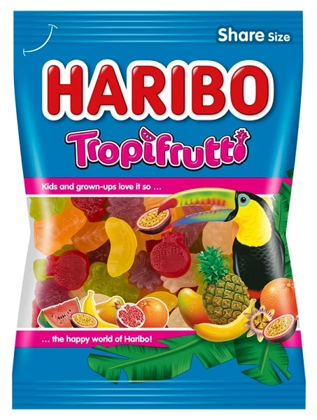 Cukor, Glükózszirup, Zselatin, Étkezési sav: citromsav, Gyümölcs- és növényi sűrítmények: sáfrányos szeklice, spirulina, alma, sárgarépa, áfonya, bodzabogyó, fekete ribizli, narancs, kivi, citrom, arónia, mangó, passiógyümölcs, szőlő, Aroma, Bodzabogyó-kivonat, Fényezőanyagok: fehér és sárga méhviasz, karnaubaviasz, Karamellszirup, Invertcukorszirup