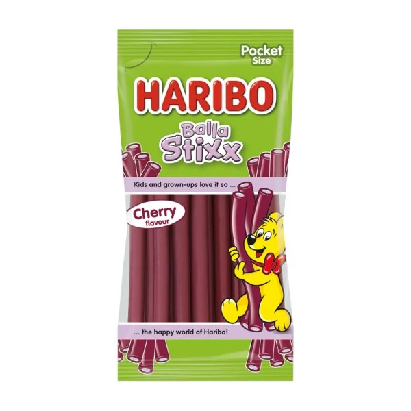 Összetevők: Cukor, glükóz-fruktóz szirup, búzaliszt, víz, dextróz, búzakeményítő, pálmazsír, nedvesítőszer: szorbit, zselatin, étkezési sav: citromsav, emulgeálószer: zsírsavak mono- és digliceridjei, aroma, gyümölcs- és növényi sűrítmények: sárgarépa, hibiszkusz, fényezőanyagok: fehér és sárga méhviasz, karnaubaviasz. Allergének: Nyomokban tejet tartalmazhat. Tárold száraz, hűvös helyen, közvetlen napfénytől és nedvességtől védve. Haribo Balla Stixx Cherry 80 g – Cseresznye ízű gumicukor szálak