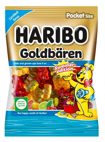 Glükózszirup, Cukor, Zselatin, Dextróz, Sűrítményből készült gyümölcslevek: alma, eper, málna, narancs, citrom, ananász, Étkezési sav: citromsav, Gyümölcs- és növényi sűrítmények: sáfrányos szeklice, spirulina, alma, bodzabogyó, narancs, fekete ribizli, kivi, citrom, arónia, mangó, passiógyümölcs, szőlő,, Aroma, Bodzabogyó-kivonat, Fényezőanyagok: fehér és sárga méhviasz, karnaubaviasz